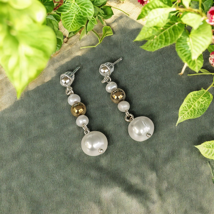 925 Ayar Gümüş Kültür İncisi & Pirit Taşlı El Yapımı Küpe