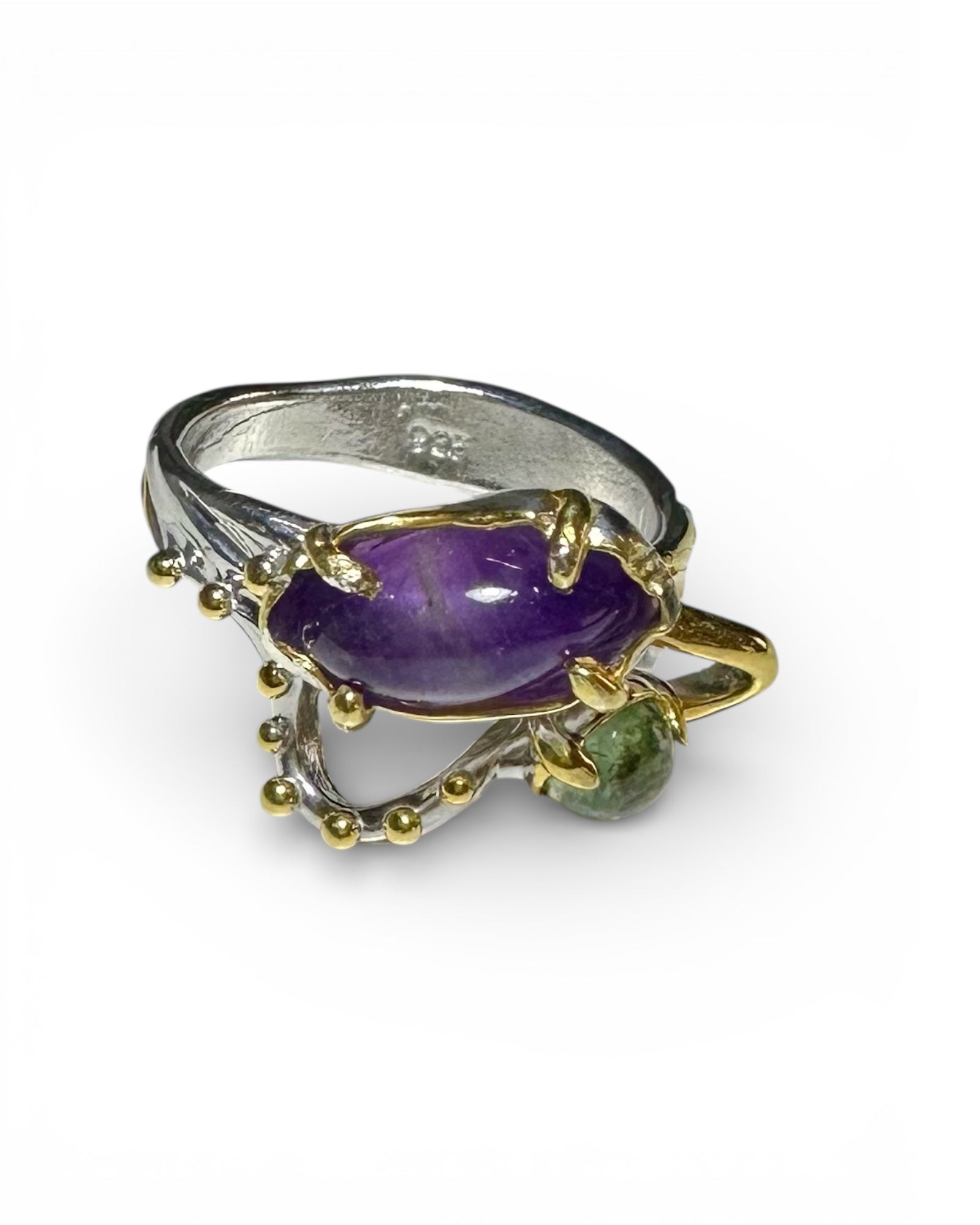 Ametist Amorf Doğal Taş 925 Ayar Gümüş El yapımı Özel Tasarım Yüzük