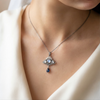 Parıldayan aquamarine, berrak deniz sularını simgelerken; ışıltılı zirkon safir, dalgaların altında saklı değerli hazineleri temsil eder. Doğal sedef ise ay ışığının deniz yüzeyindeki yansımasını anımsatır.