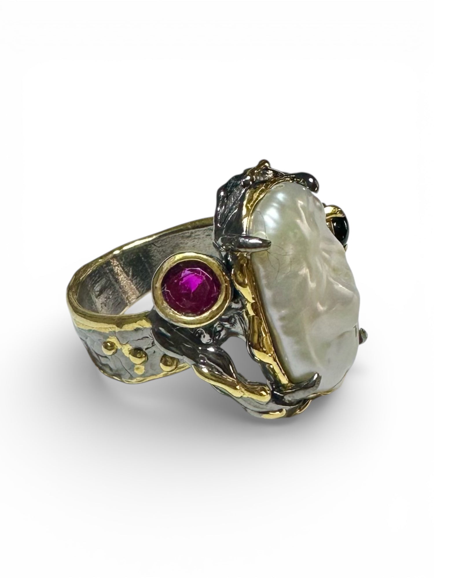Barok İnci Amorf 925 Ayar Gümüş El Yapımı Özel Tasarım Yüzük