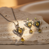 Kolye ve uyumlu küpelerden oluşan bu set; özel günler, davetler veya unutulmaz bir hediye için mükemmel bir seçimdir.