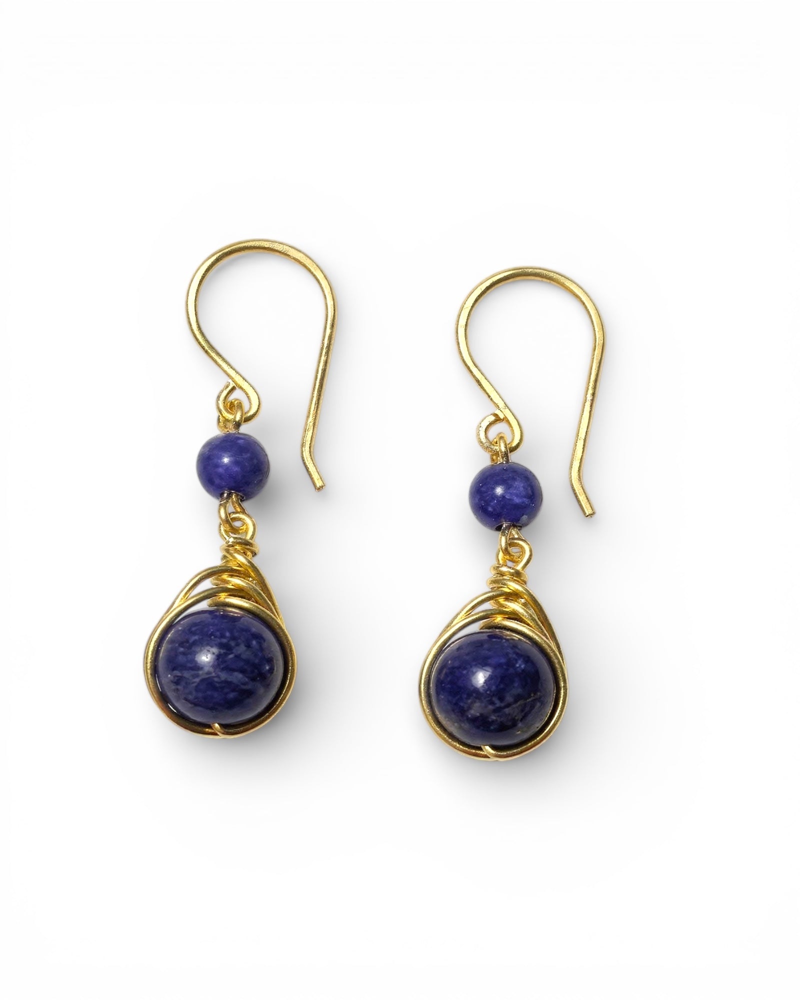 Lapis Doğal Taş Gümüş Tel Sarma Küpe
