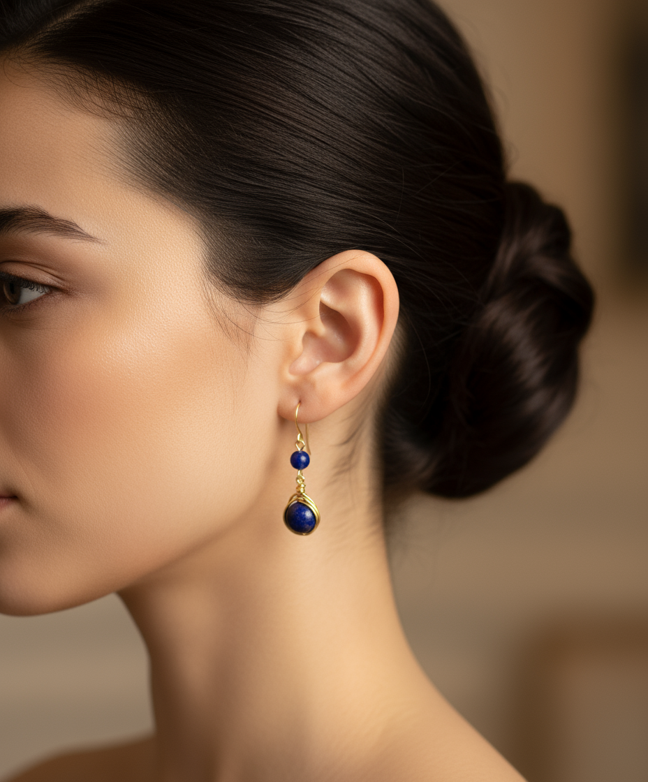 -Ürün Açıklaması:Derin mavi rengiyle bilinen lapis taşı, altın yaldız kaplama ile birleşerek zarif bir küpeye dönüştürülmüştür. El yapımı tel sarma tekniğiyle tasarlanan bu küpeler, günlük ya da özel günler için mükemmel bir aksesuar seçeneğidir. Lapis taşının doğal ışıltısı ve altın yaldızın sıcak tonları ile sofistike bir şıklık sunar.