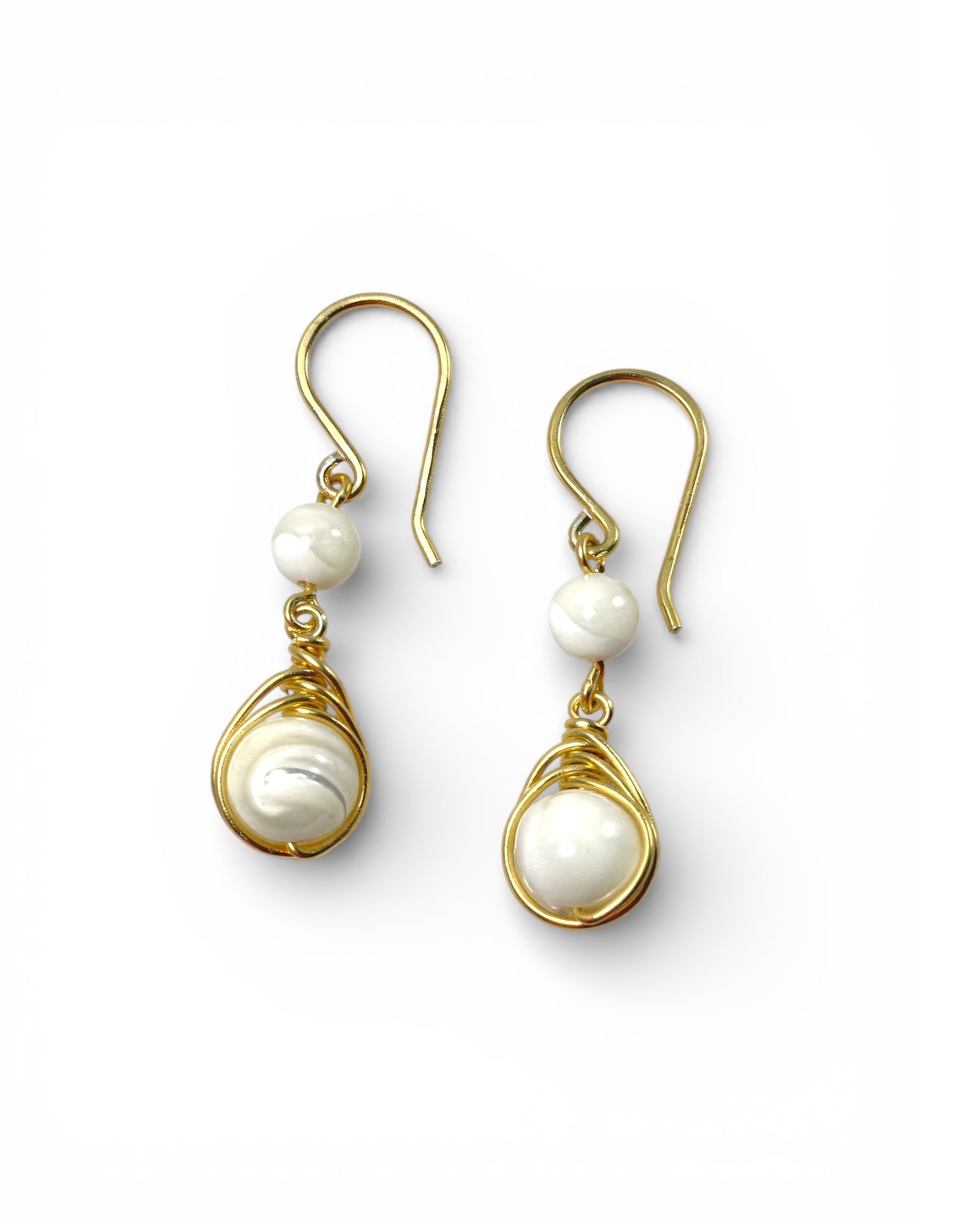 Sedef Doğal Taş Gümüş Tel Sarma Küpe