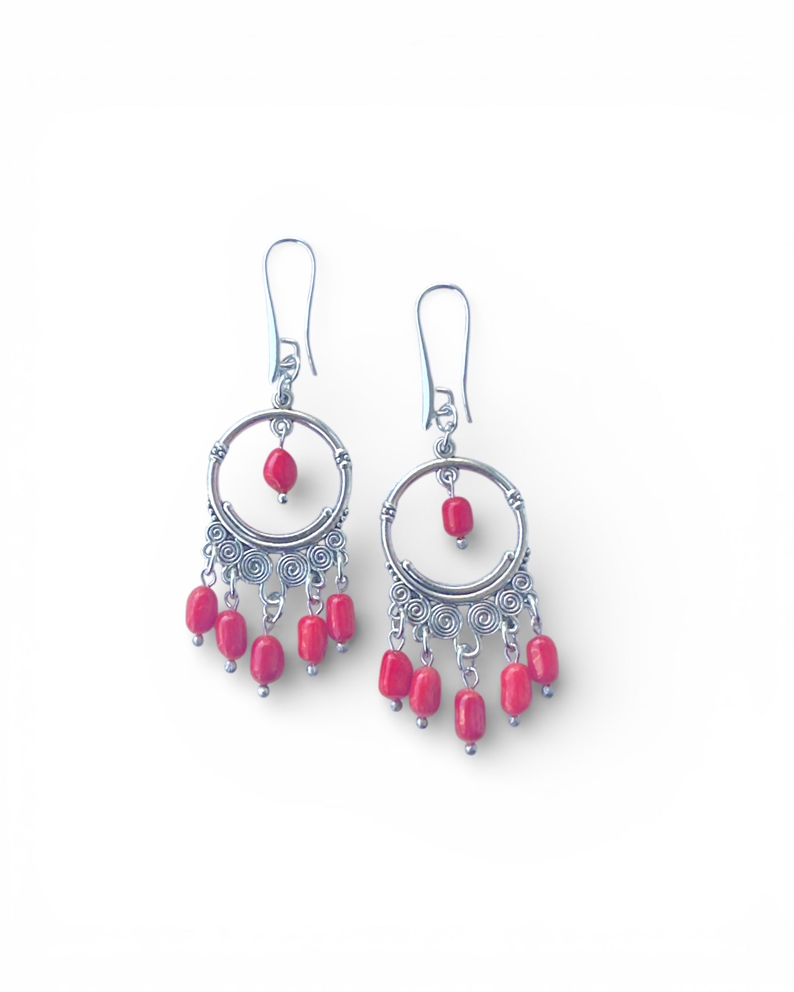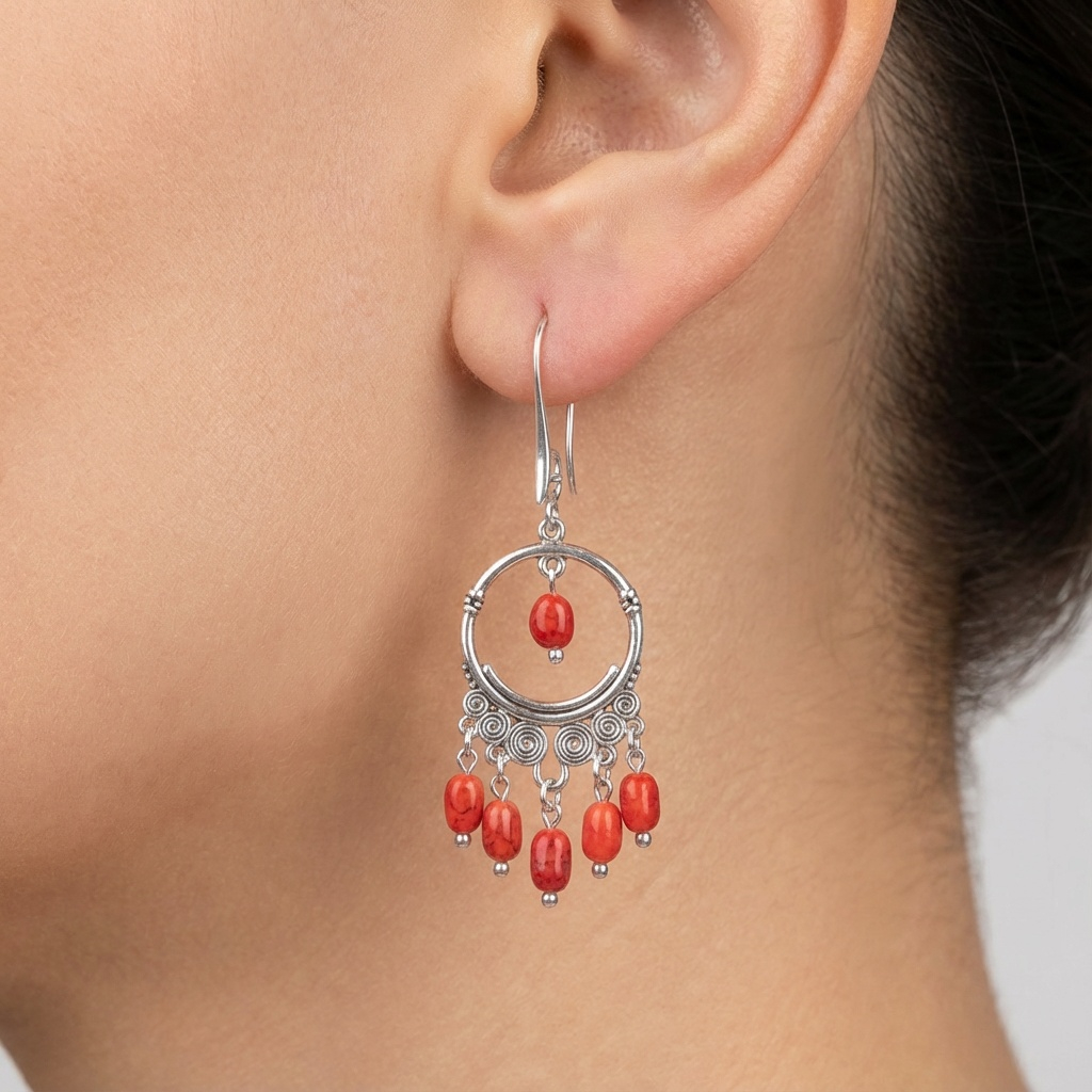 Kırmızı Mercan Doğal Taş Retro Etnik Küpe